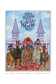Reynolds' official Derby 152 artwork showcases five Thoroughbreds charging from the starting gate beneath the Twin Spires, with red roses bursting from the track to demonstrate the emotion and anticipation of the Run for the Roses®.