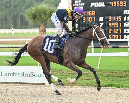 The daughter of leading sire Into Mischief and 9-5 morning-line favorite returns to the site of her debut win last October, when she won at the Lexington track by 4 3/4 lengths. She went on to become a stakes winner in her second start for LNJ Foxwoods and NK Racing and then placed third in two grade 3 stakes—the Forward Gal Stakes (G3) at Gulfstream Park and Honeybee Stakes (G3) most recently at Oaklawn Park.